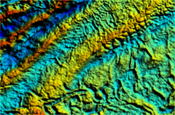 Strike lineament of seismic amplitude time slice horizon